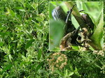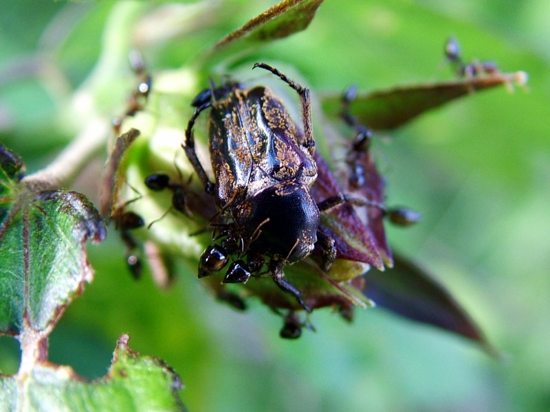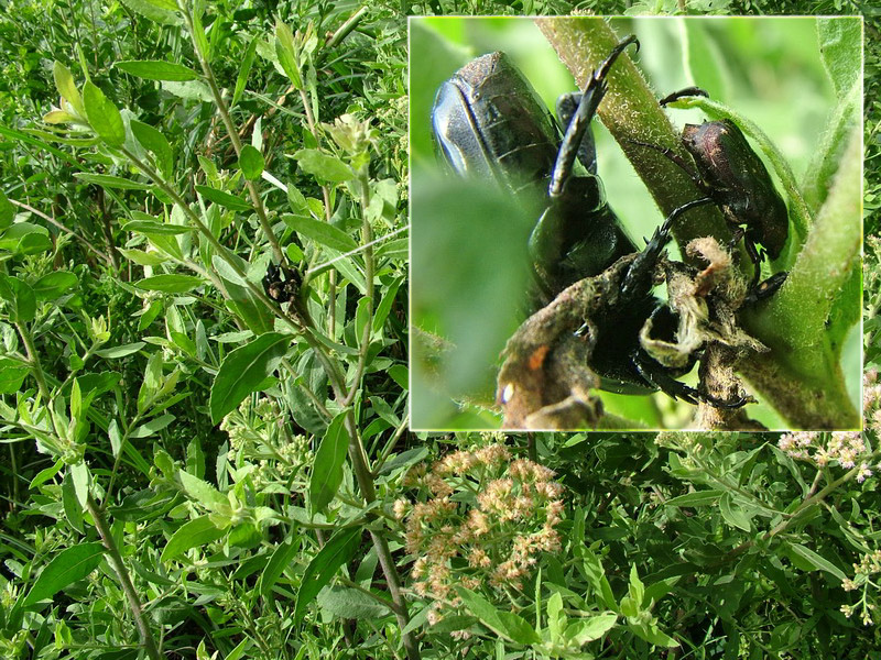 > Cymophorus sp. (+ Diplognatha gagates) feeding on Eupatorium sp. (Tanzania, Rubeho Mt.), >> Rhagopteryx brahma (Uganda)